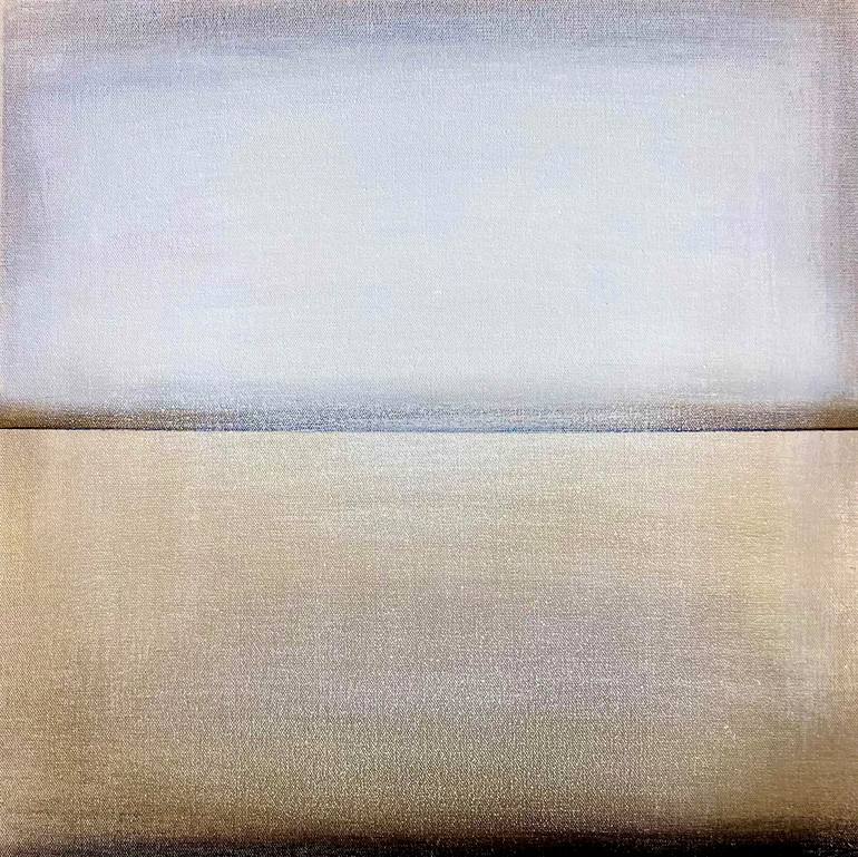 Acrylics on canvas allow the artist to build layers of color and texture, resulting in a simple yet refined composition. The interplay of creams, black, white and grays creates a captivating visual experience, reminiscent of Rothko’s regions of color, where the central line gains focus, meaning and purpose. The artist evokes a sense of light and depth, hinting at a spiritual dimension that enlivens the artwork.